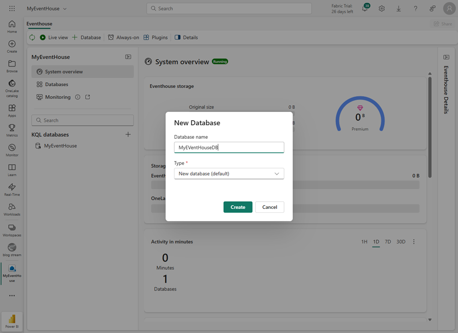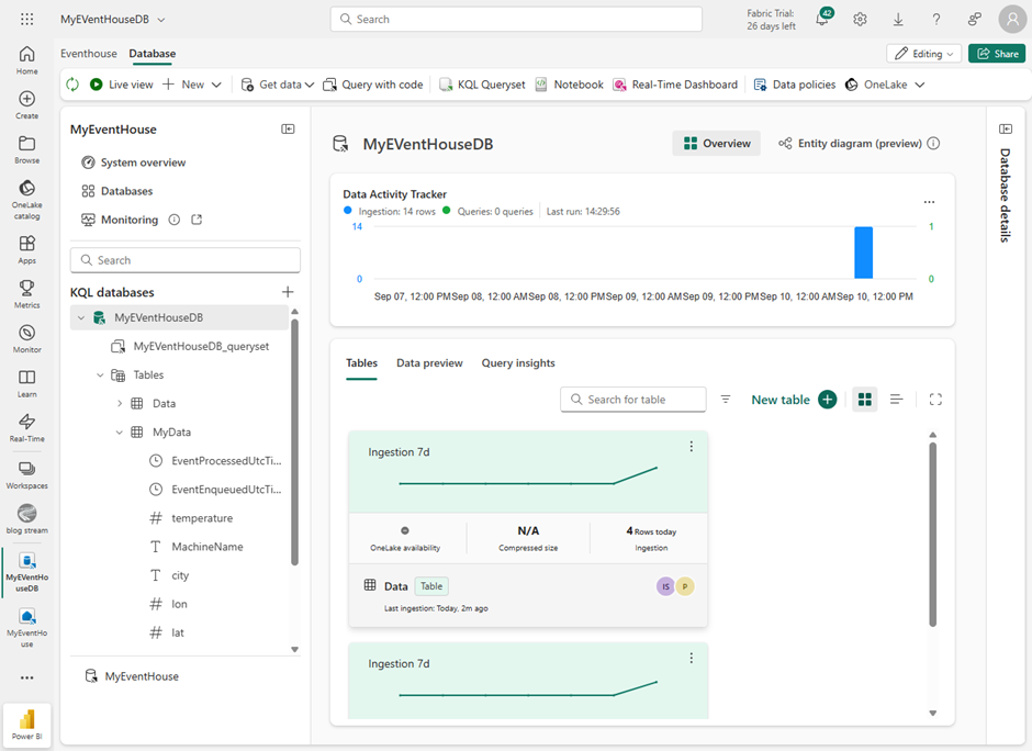 Within this data sink I then created a KQL database.