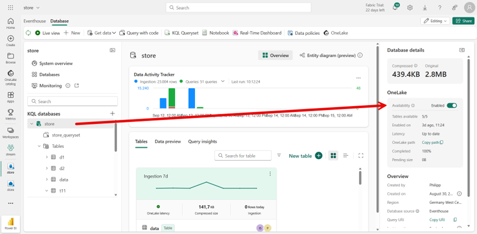 In a meeting with Frank Geisler, I learned how to save the table data in OneLake. However, it’s important to note that since these are compressed Kusto files, the files won’t be visible for one or two days.