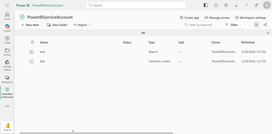 After that, everything is up to date. I then created a simple Power BI project as well as a workspace where my Service Principal has admin permissions.